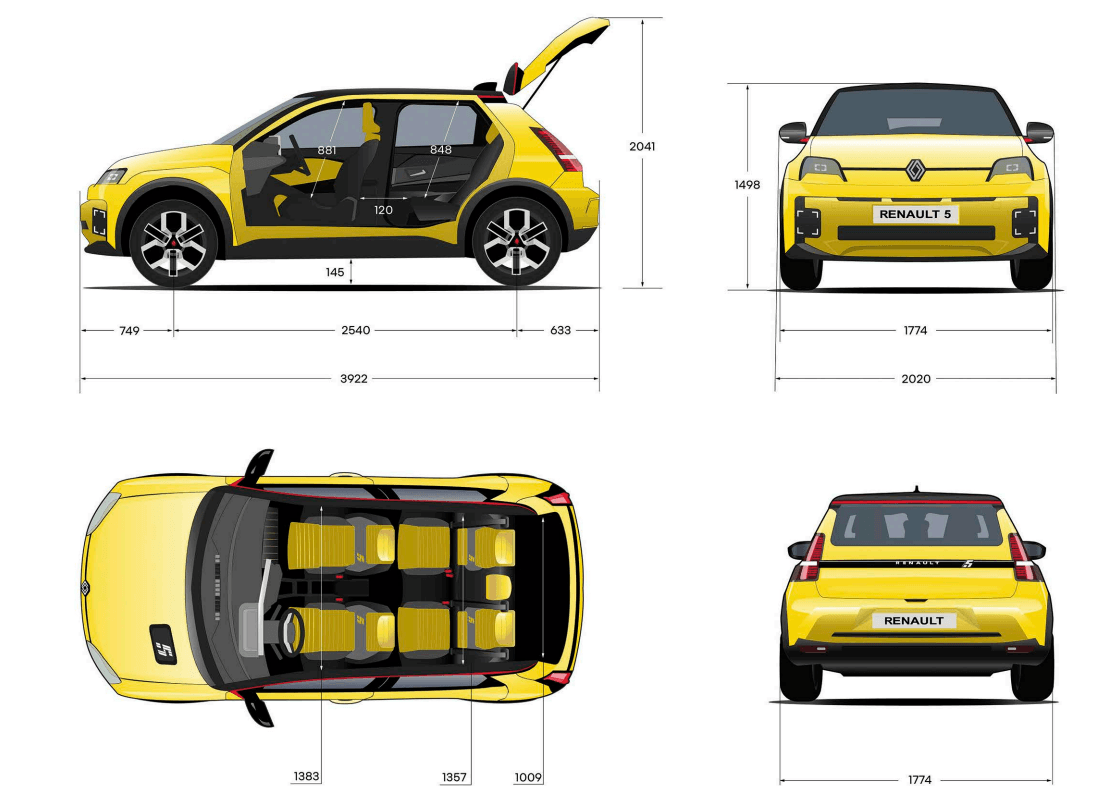 Renault 5 E-Tech electric ser kompakt ut på utsiden, men elbilen har plass til 5 passasjerer. Med parkeringsassistenten er bilen lett å manøvrere og parkere. En ekte bybil for hverdagen.